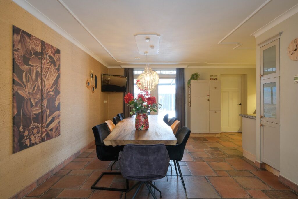 De woning beschikt over maar liefst vijf slaapkamers, waardoor er ruimte is voor een groot gezin, thuiswerken of hobby’s. Het hart van het huis wordt gevormd door de royale woonkeuken, een fijne plek waar koken en samen zijn centraal staan.